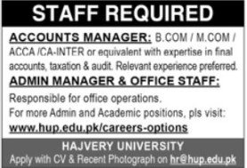 Candidates, if you are seeking the Hajvery University Jobs 2026 Online Application if yes. It would be best if you tried to complete reading this Hajvery University Jobs because you can easily apply for these vacancies: Accounts Manager, Admin Manager, and Office Staff.