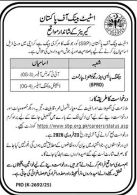 State Bank of Pakistan Jobs 2026 Advertisement