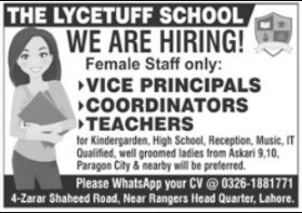 Candidates, if you are seeking the Lycetuff School Jobs 2026 in Lahore if yes. It would be best if you tried to complete reading this, The Lycetuff School Jobs, because you can easily apply for these vacancies: Vice Principal, Teachers, and Coordinators.